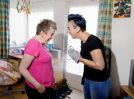 “Natuurlijk vind ik het wel jammer dat alles niet meer zo gaat als toen mijn moeder nog leefde en dat ik niet meer met Erik-Jan kan samenwonen. Maar ik weet wel dat het beter is, vanwege mijn boze buien en zo. Mijn zussen, mijn persoonlijk begeleider, mijn jobcoach en mijn werkbegeleider van SOVAK zorgen ervoor dat ik mijn leven kan leven zoals ik wil en mijn eigen keuzes kan maken. Dat vind ik erg fijn.”